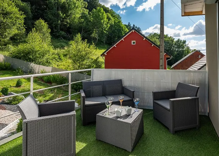 Maison Ossature Bois Villa is situated 2.9 km from La Banne d'Ordanche in La Bourboule and offers accommodation with an equipped kitchenette. The chalet offers to enjoy garden views from a terrace.